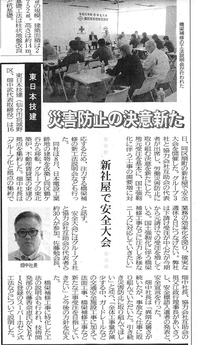 令和5年9月16日に開催しました弊社の安全大会についての記事が日刊建設新聞に掲載されました。